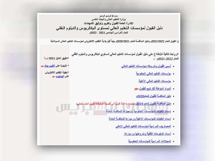 الرابط الرسمي لدليل القبول في الجامعات السودانية للعام 2021 في ديسمبر 16, 2021 أخبار سودان إكسبريس نشرت وزارة التعليم العالي السودانية الدليل الرسمي للتقديم لمؤسسات التعليم العالي والبحث العلمي. ويمكنكم الوصول إليه من هذا الرابط الانضمام لمجموعات سودان إكسبريس في واتساب