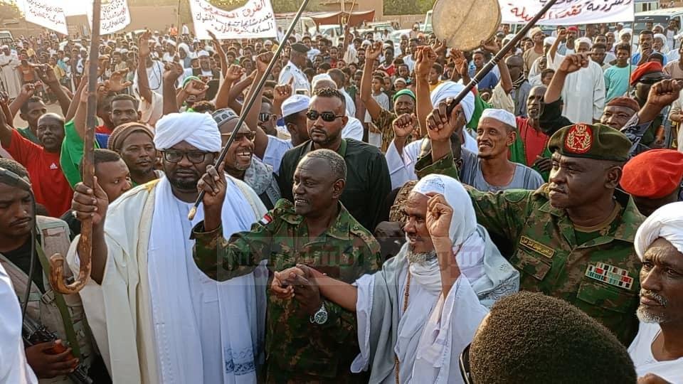 وصف والي الخرطوم الأستاذ أحمد عثمان حمزة إحتشاد الصوفية بانها وقفة غضب وسلاح وادانة لجرائم المليشيا ضد المواطنين العزل واعمال القتل والترويع والنهب والاغتصاب وقال حان الوقت أن يصطف الشعب السوداني خلف معركته المصيرية للقضاء على هؤلاء القوم الذين لادين ولا أخلاق لهم. جاء ذلك خلال مخاطبته بمنطقة النوفلاب اللقاء الجماهيري الحاشد لمشائخ الطرق الصوفية والمريدين والمرابطين بولاية الخرطوم لدعم واسناد قوات الشعب المسلحة في معركة الكرامة تحت شعار الصوفية صمام أمان السودان ومع القوات المسلحة في الميدان. مشيداً بوقفة الطرق الصوفية في الخلاوي والمساجد ودور العلم لافتاً الى أن إحتشادهم اليوم خلف معركة الكرامة واسنادهم لها ب ٣٥٠ مستنفر يؤكد أن الطرق الصوفية حاضرة وستظل كذلك تجاهد في سبيل الله وأعلن الوالي أن الأيام القادمة ستشهد تسليح المقاومة الشعبية مشيرا الى ان لائحة تنظيم المقاومة الشعبية التي صدرت مؤخرا ستدعم عمل المقاومة وتدفع بها الى الامام. ممثل قائد منطقة وادي سيدنا العسكرية اللواء ركن مهندس دكتور أمير سليمان أكد أن الطرق الصوفية بمشائخها ومريديها وحيرانها وحملها للسلاح تشكل دعما وسندا للقوات المسلحة في معركة الكرامة التي ابلت فيها القوات النظاميه بلاء حسنا وقدمت الشهداء والجرحى مؤكدا إنهم جاهزون للتصدي لأي عدوان يحاك ضد أرض وعزة وكرامة الشعب السوداني مولانا طارق عبدالله محمد مدير الادارة العامة للشئون الدينية بالولاية أكد أن المتصوفه في السودان ظلوا ومازالوا يقودون المبادرات الداعمة للسلام والأمن وإصلاح ذات البين ونصرة القوات المسلحة والقوات النظاميه وهي تخوض معركة الكرامه وقال جاءت هذه المبادره لتؤكد تماسك النسيج الاجتماعي السوداني بكل سحناته وطوائفه وتوجهاته العقائدية من أجل نصرة الدين والعقيده والأرض والعرض. ممثلو الطرق الصوفية أكدوا بأن المشائخ والمريدين باقين على عهدهم ووعدهم في نصرة القوات المسلحة والقوات النظاميه في معركة إلكرامه وجددوا العزم بمواصلة الدعم بالمال والرجال والدعاء حتى يتحقق النصر المؤذر عزةً للبلاد والعباد.